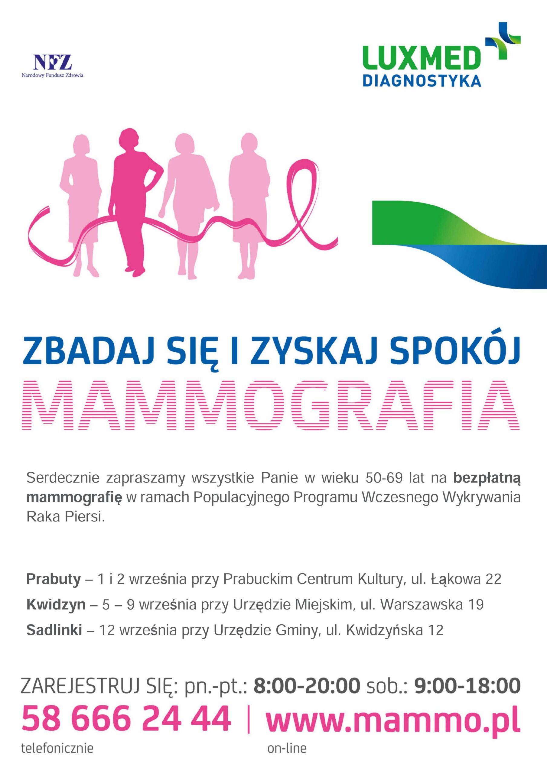 8 sierpnia 2016 Zapraszamy na bezpłatne badania w ramach Populacyjnego Programu Wczesnego Wykrywania Raka Piersi