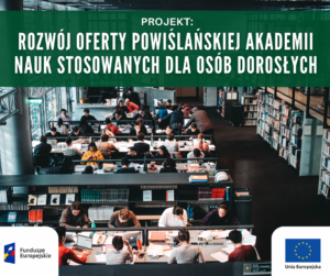 Powiślańska Akademia Nauk Stosowanych zaprasza do udziału w nowych szkoleniach realizowanych w ramach projektu „Rozwój Oferty Powiślańskiej Szkoły Wyższej dla osób dorosłych” (Program Fundusze Europejskie dla Rozwoju Społecznego 2021–2027). To doskonała okazja, aby rozwinąć swoje kompetencje zawodowe i zdobyć praktyczne umiejętności przydatne w codziennej pracy.