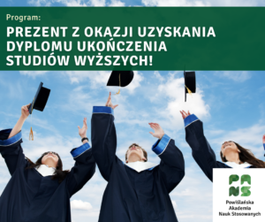 5 lipca 2022 „Prezent z okazji uzyskania dyplomu ukończenia studiów wyższych!” przeznaczony dla absolwentów Powiślańskiej Akademii Nauk Stosowanych, którzy ukończyli studia w roku akademickim 2024/2025. Regulamin programu